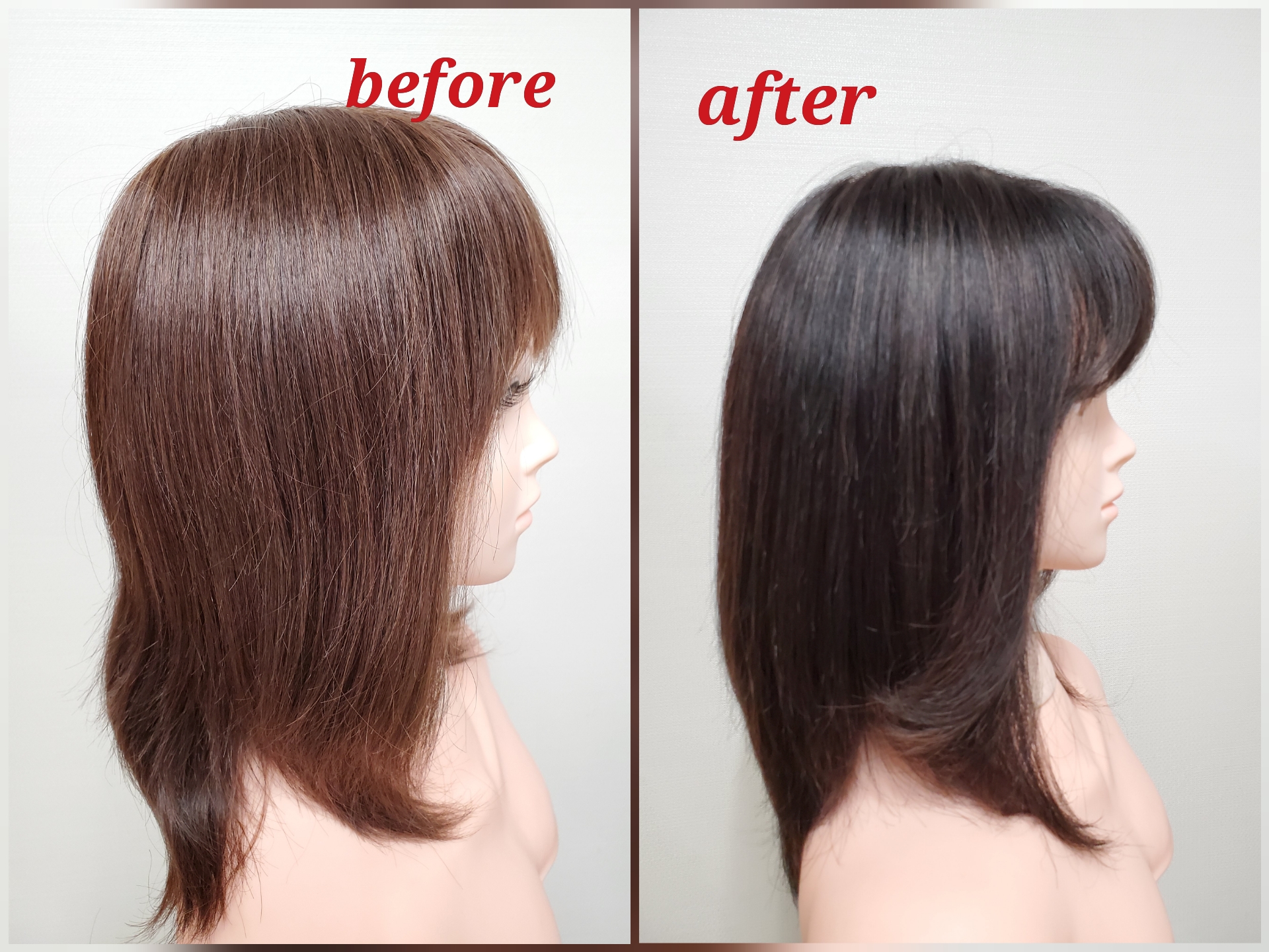 色が明るくなってしまったウィッグを暗めにカラーを入れたました。