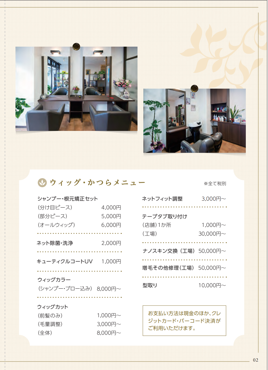 医療用ウィッグ・かつらのメニュー