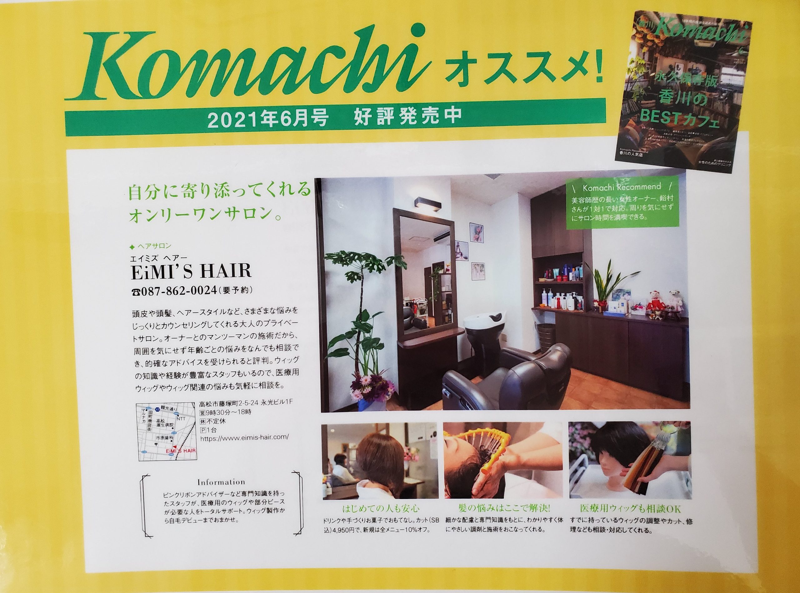 「komachi 6月号(5/20発売)」にエイミズヘアーが掲載しています。