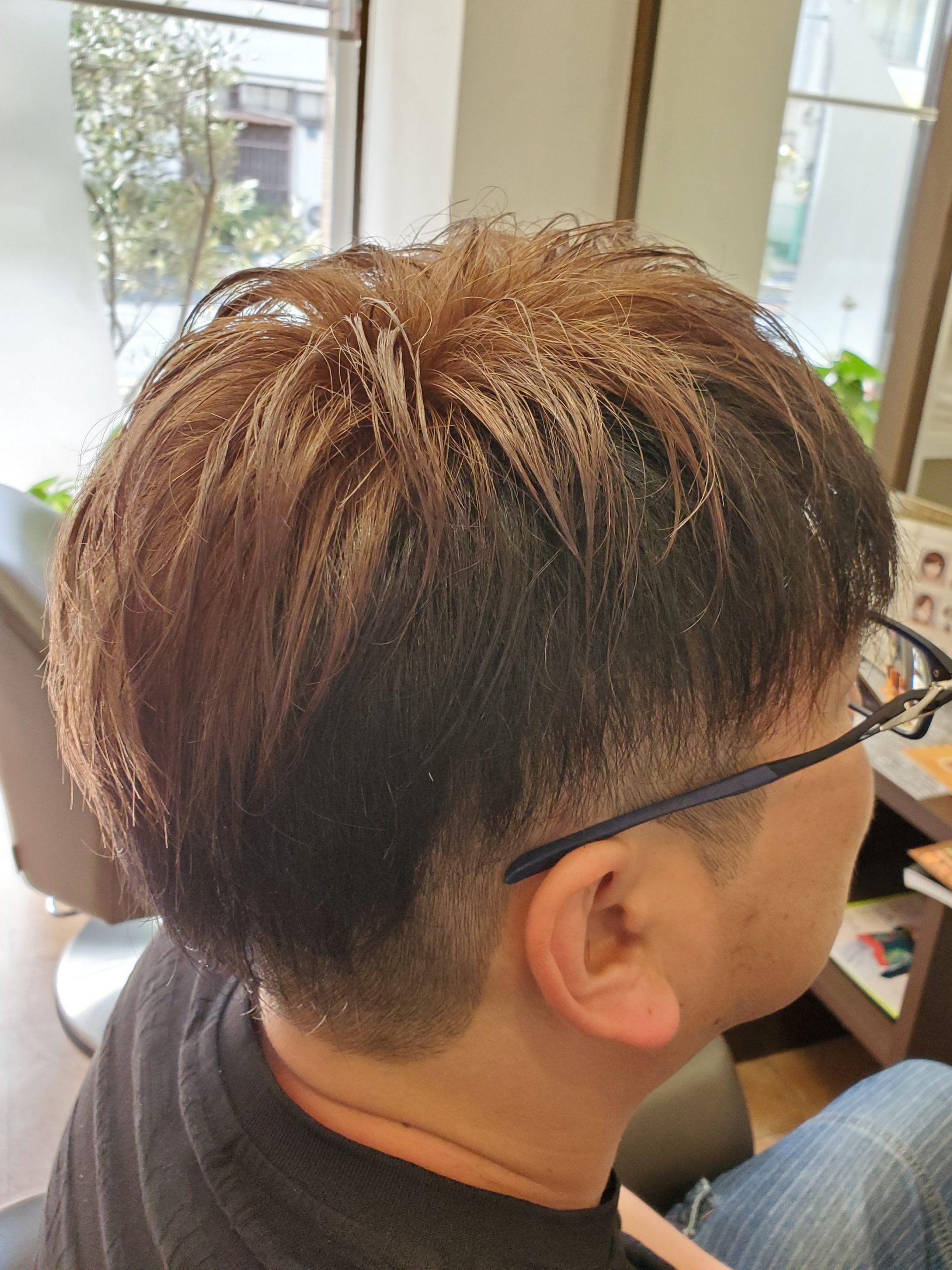 根本に新生毛が4㎝ぐらい出てきたので、頭皮に負担がかからないようにサポートoilをつけブリーチを入れた後シルバーカラーを入れました。